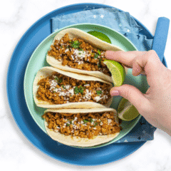 Your weeknight dinner rotation just got a lot more satisfying! Whip up these quick ground chicken tacos in just 15 minutes for a delicious, family-friendly dinner. Made with seasoned ground chicken and the optional addition of zucchini and carrots, these soft tacos are incredible topped with shredded cheese, a twist of lime, lettuce, and any of your other go-to taco toppings.